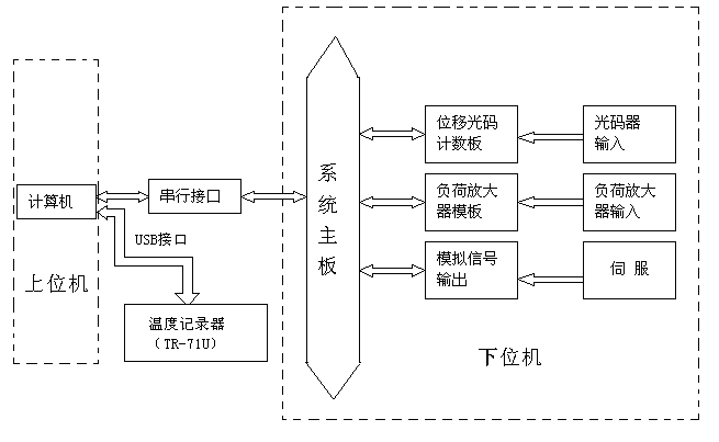 本机控制测量系统由上位机和下位机组成。上、下位机通过串行口通信传送数据,具体见原理框图。