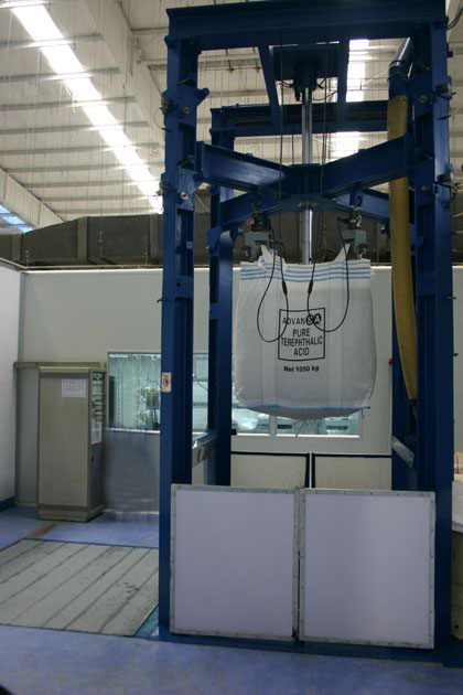 集装袋试验机由承载加力架、液压加载系统、挂架、挂钩、可调加压盘、测控系统组成;