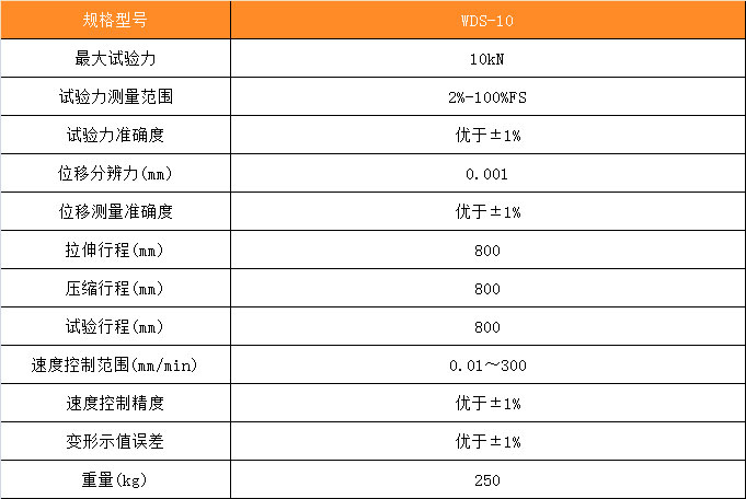 WDS系列试验机适用于金属、非金属材料的拉伸试验,增加附具可做压缩、弯曲、剪切、剥离、撕裂等试验。具有试验力数字显示,试验速度连续可调,试样拉断自动停机,峰值保持等功能,预留的通讯接口可以方便的与计算机连接实现数据的后期处理。