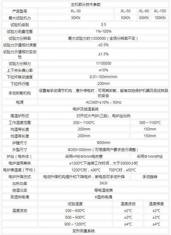 电子式高温持久蠕变试验机满足GB/T2039-1997《金属拉伸蠕变及持久试验方法》、HB5151-1996《金属高温拉伸蠕变试验办法》的要求,主要用于金属、非金属、复合材料以及结构件等进行高温蠕变松弛试验、高温持久试验和高温拉伸试验等,也可以进行常规拉伸试验及低频疲劳试验。是冶金部门、科研机构、质检部门、航空航天、车辆制造、机械制造、石油化工、建筑材料、高等院校及有关矿企业进行材料性能检验和研究的常用设备。